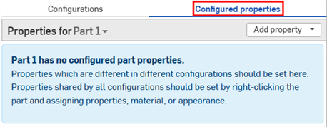 - Exclude from properties - (Parts and Part Studios only). See Configurations: Excluding configurations from affecting properties.