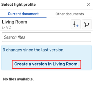 Wenn der Link „Version erstellen“ im Dialogfenster „Lichtprofil auswählen“ nicht angezeigt wird, klicken Sie in der Dokument-Palette auf die Schaltfläche „Version erstellen“ (