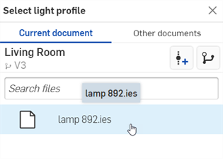 Klicken Sie auf Andere Dokumente, um eine IES-Datei in einem anderen Onshape-Dokument zu finden.