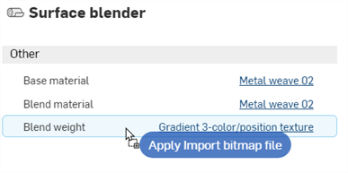 Suchen Sie in der Aussehen-Bibliothek im Ordner „Aussehen-Funktionen“ die Funktion Bitmap-Datei importieren – Bitmap-Textur und ziehen Sie sie dann per Drag-and-Drop über den Farbparameter für Aufkleber in der Aussehen-Palette (2. Bild unten). Auf diese Weise können Sie eine Datei auswählen, die für den Aufkleber verwendet werden soll.