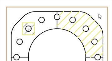 Al pasar el cursor por cualquier otro lugar de la vista (fuera de las regiones de sombreado), se resalta el cuadro de delimitación de la vista en naranja, se resalta el área circundante de las regiones de sombreado dibujadas con herramientas de dibujo en amarillo y se resalta el color amarillo del sombreado del perfil cerrado (el perfil no está resaltado):