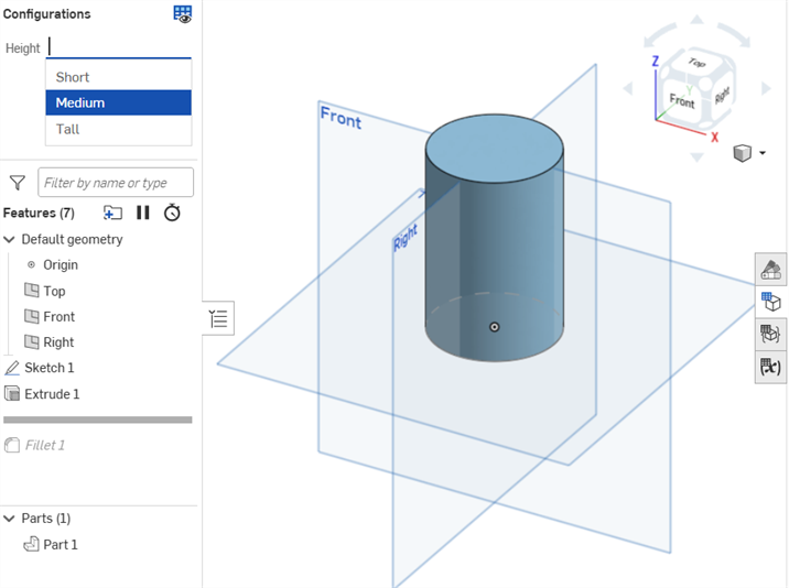 This example has 3 possible configurations: Short, Medium, and Tall.