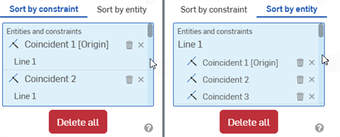 요소별 정렬 - 아래의 요소 및 구속 조건 목록을 먼저 요소별로 정렬한 다음 구속 조건별로 정렬합니다.